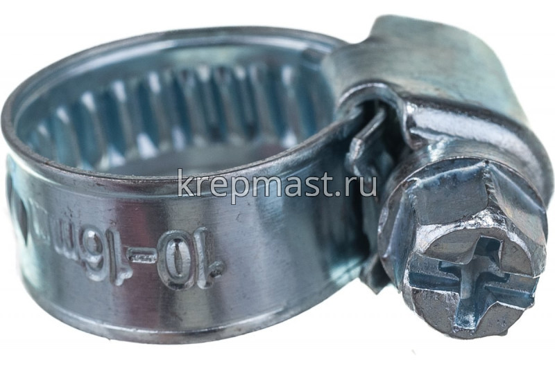 Нержавеющий червячный хомут 10-16 представляет собой зажим, использующийся для фиксации эластичных шлангов, патрубков, трубок. Хомут выполнен из стали. Слой цинка надежно защищает металл от коррозии. Хомуты червячные дают возможность обеспечить герметичное соединение гибких элементов трубопровода с фитингами и штуцерами без использования прокладок.
