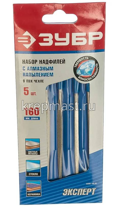 Набор алмазных надфилей ЗУБР 160х80 мм, 5 предметов Р140 в Пестрецы