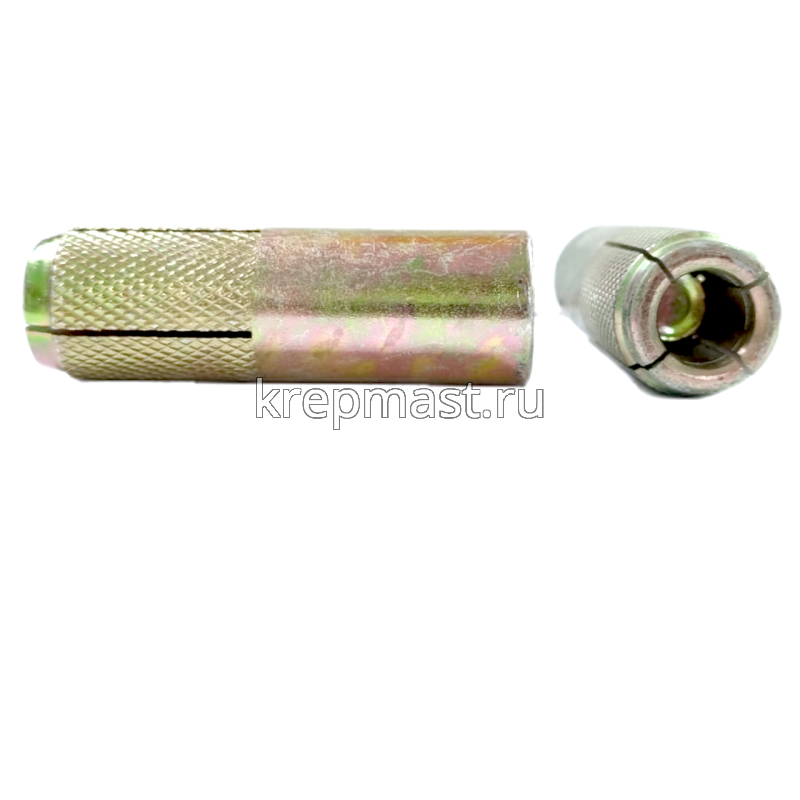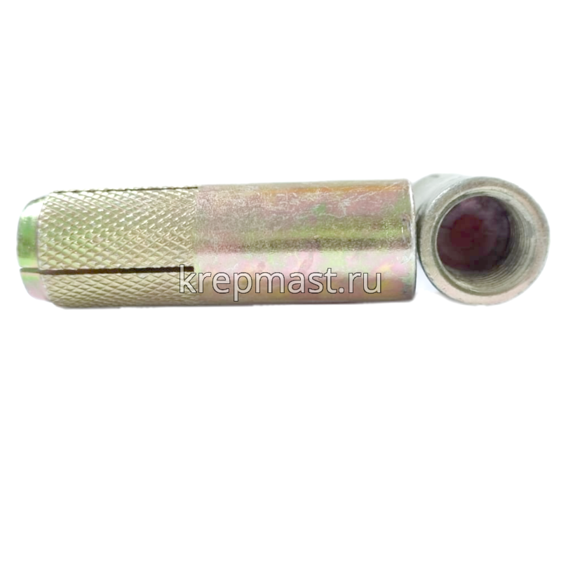 Забиваемый анкер М 20 применяется для крпеления конструкций к бетону, природному камню, кирпичу. Забивной анкер имеет внутреннюю резьбу и конусообразныый клин. Такой анкер расклинивается специальным инструментом.