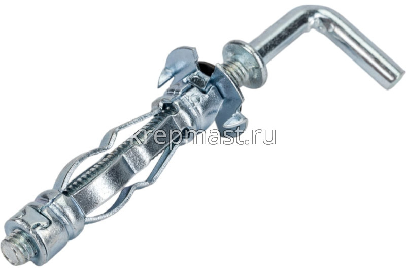 Дюбель Молли с крюком М4 х 32 — специальный вид крепежа, разработанный для работы с гипсокартоном, листами ДСП, блоками из пенобетона и другими пустотелыми материалами.