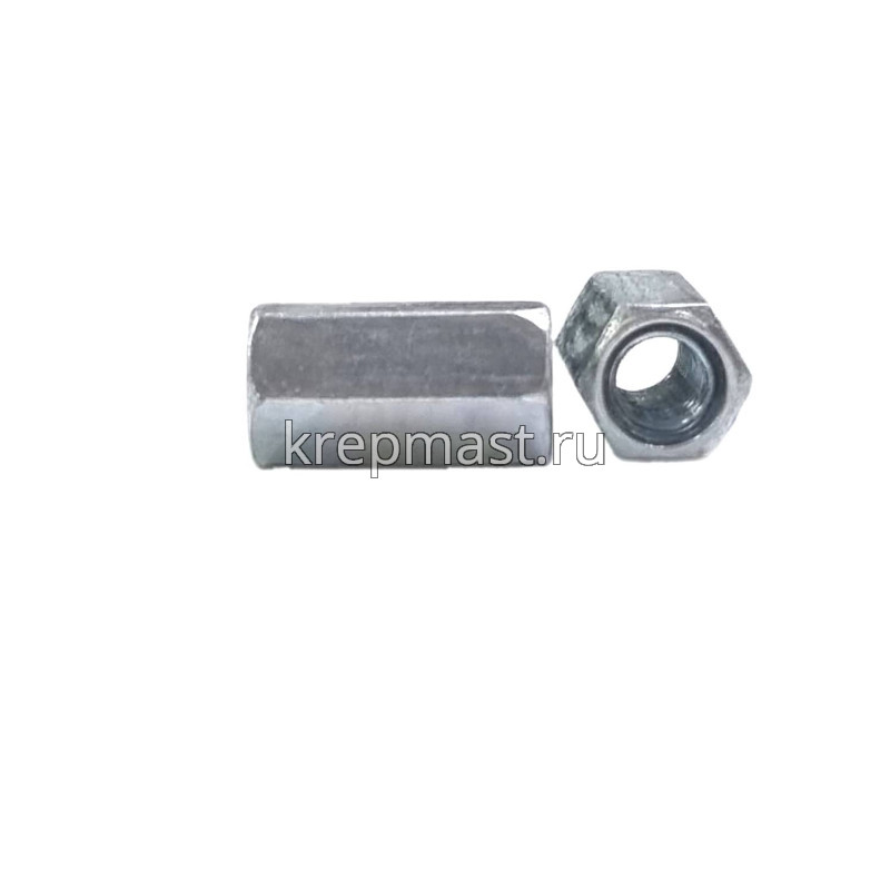 Соединительная гайка М5 DIN 6334 (шестигранная резьбовая муфта) применяется в качестве соединительного элемента при наращивании и удлинении резьбовых изделий: шпилек, болтов, анкеров с резьбой.