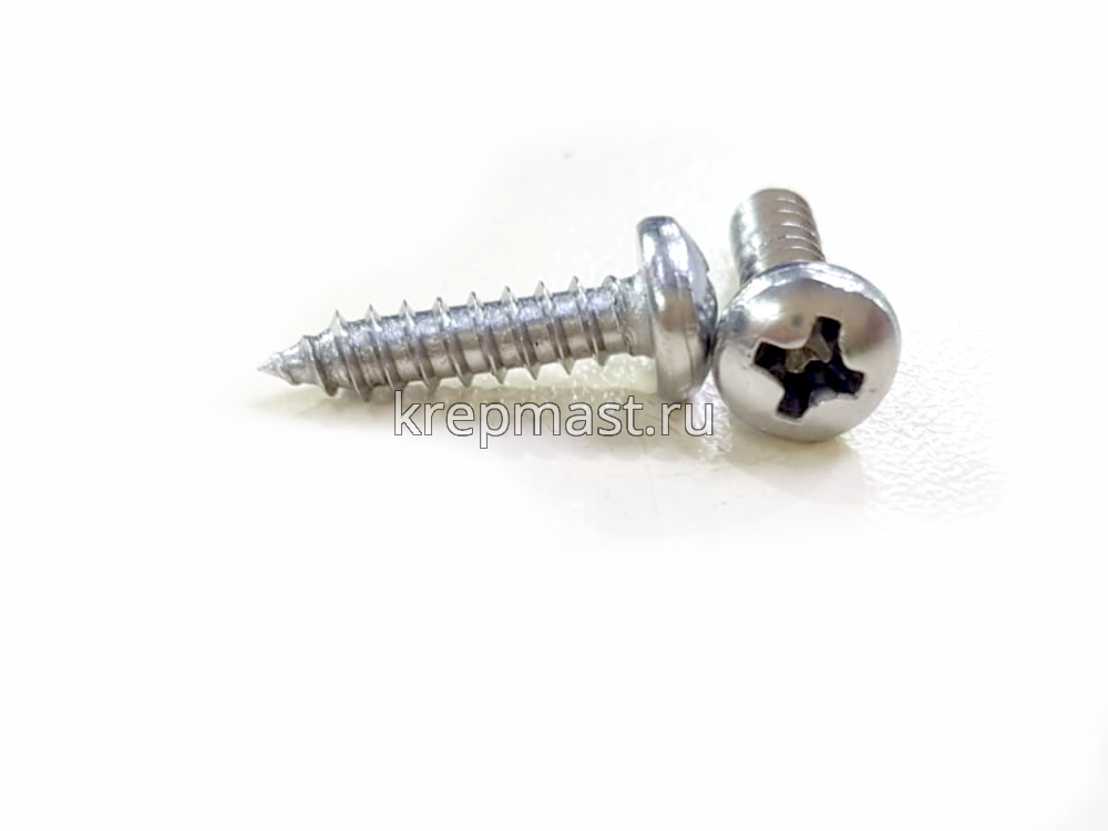 Саморез нержавеющий по металлу с полусферической головкой и острым концом DIN 7981 3.9 x 16 А2 применяется для крепления стальных и других листовых материалов (дерево, фанера) к металлическим и деревянным несущим конструкциям.
