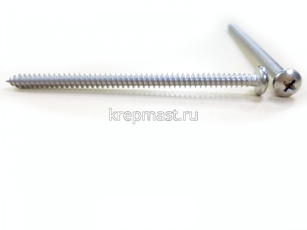 Саморез нержавеющий по металлу с полусферической головкой и острым концом DIN 7981 4.8 x 80 А2 применяется для крепления стальных и других листовых материалов (дерево, фанера) к металлическим и деревянным несущим конструкциям.