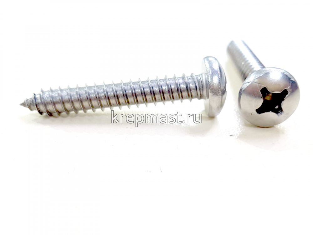 Саморез нержавеющий по металлу с полусферической головкой и острым концом DIN 7981 6.3 x 38 А2 применяется для крепления стальных и других листовых материалов (дерево, фанера) к металлическим и деревянным несущим конструкциям.