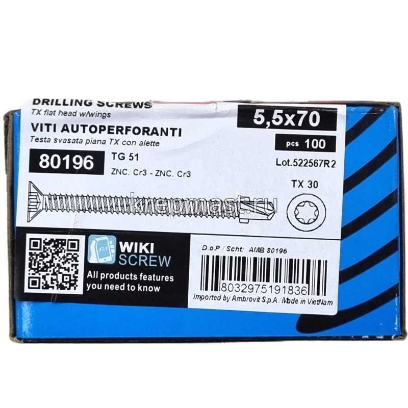 Саморез кров. ТХ30 с УШКАМИ б/шайбы DIN 7504 P 5,5х70 потай. - сверло оцинк. в Пестрецы