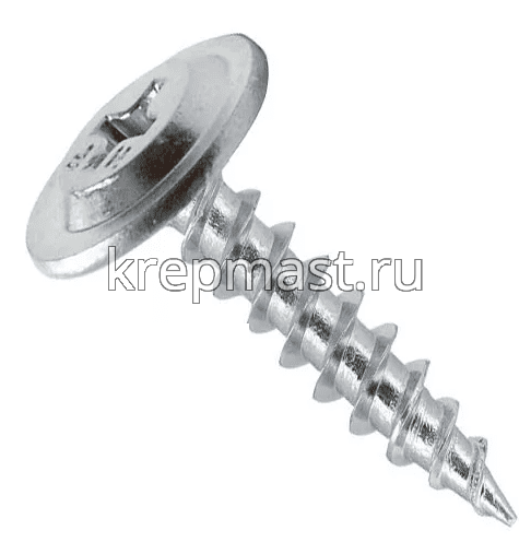 Саморез с пресс-шайбой имеет резьбу с мелким шагом и острый конец. Способен просверливать металл толщиной 0,9 мм.