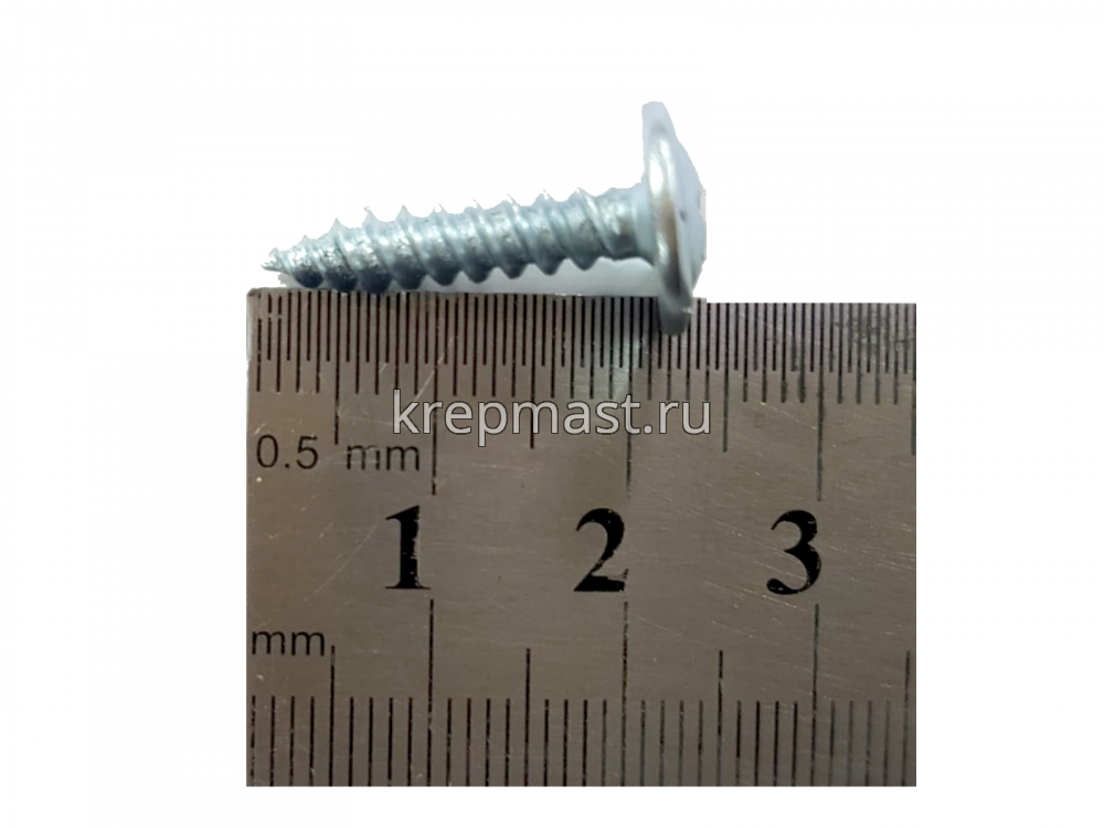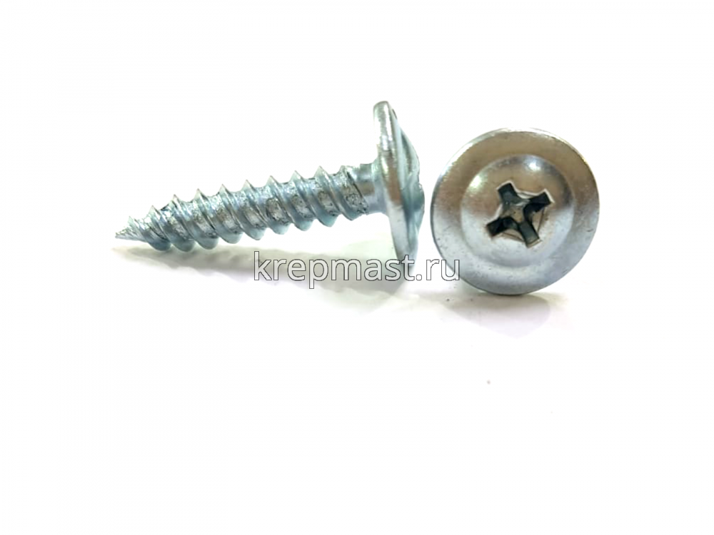 Саморез с пресс-шайбой имеет резьбу с мелким шагом и острый конец. Способен просверливать металл толщиной 0,9 мм.
