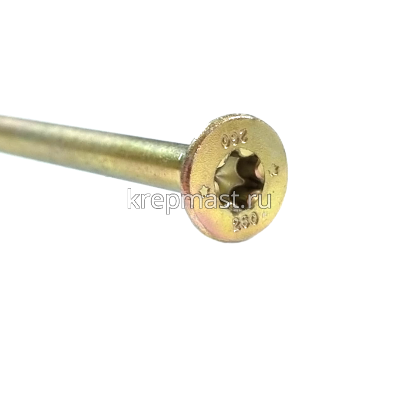 Конструкционный саморез по дереву с потайной головкой 8,0 х 260 совершает в одно движение такие операции, как накернивание, засверливание, зенковка и вворачивание.