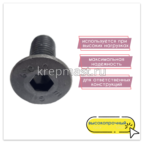 Винт с внут. шестиг. потай голов. 12х 30 кл.пр.10,9 DIN 7991 оц. / черный в интернет-магазине «Мастер Крепежа» по цене 55 руб. Более 10 наименований товаров в наличии в категории Винт DIN 7991 с внутр.шестигр. (потай) 12мм. Купить винт с внут. шестиг. потай голов. 12х 30 кл.пр.10,9 din 7991 оц. / черный в Пестрецы выгодно Вы можете on-line на нашем сайте, или отправив заявку по почте, а также по телефону или в пункте выдачи компании г. Казань, ул. Татарстан, 9, магазин "Мастер Крепежа". Доставка по Республике Татарстан и другие регионы РФ.