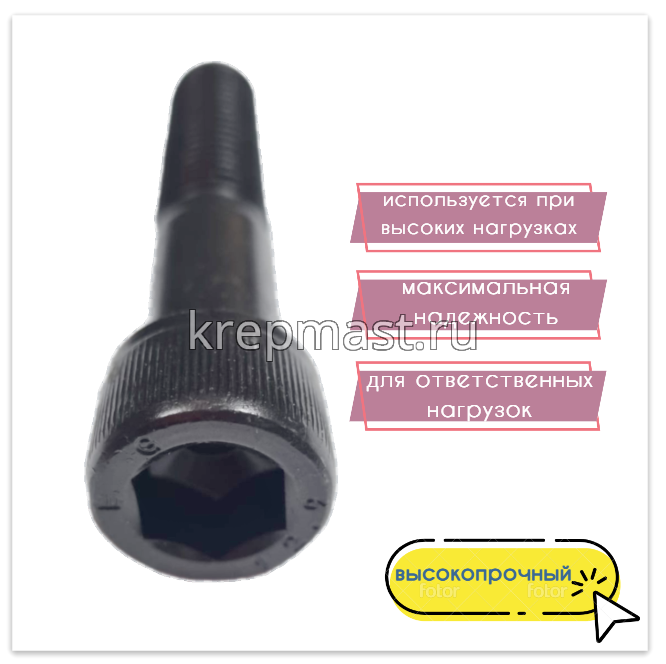 Высокопрочный имбусовый болт способен обеспечить разъемное соединение, не уступающее по прочности сварному и превосходящее заклепочное. Высокопрочный винт дин 912 можно использовать многократно, он подходит для конструкций, которые требуют последующего ремонта.