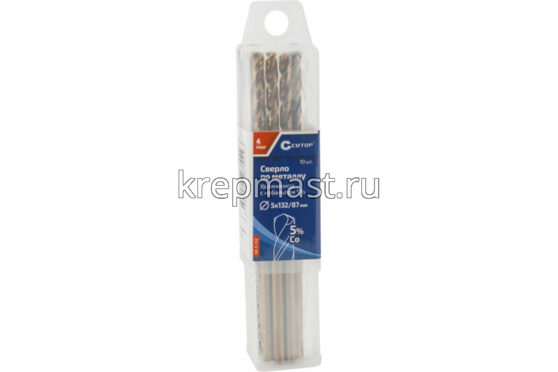 Удлиненное кобальтовое сверло по металлу М 5,0 x 132мм CUTOP изготовлено из быстрорежущей стали Р6Co5М5. Сверло шлифованное и имеет цилиндрический хвостовик. Подходит для сверления цветных металлов. Угол заточки при вершине — 135 градусов, а класс точности — А1.
