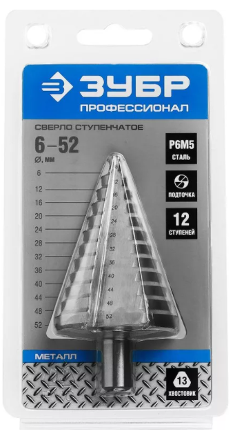 Сверло ЗУБР ступенчатое HSS по металлу (6-52мм) 12ступеней