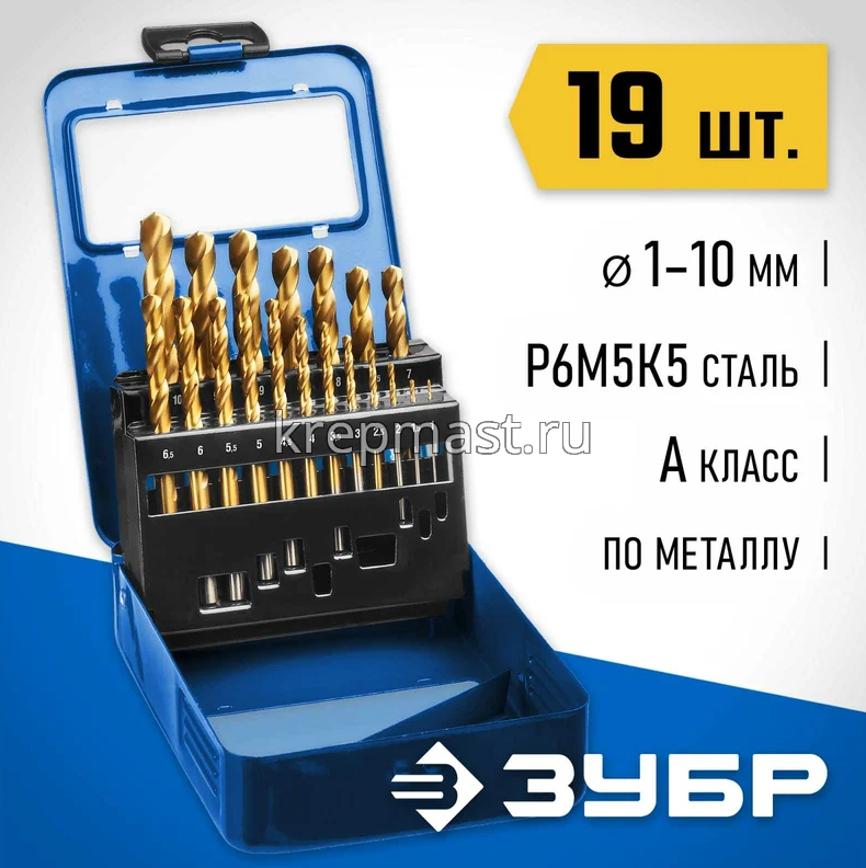 Набор сверел по металлу 19шт ЗУБР (1-10мм) КОБАЛЬТ металл.бокс в интернет-магазине «Мастер Крепежа» по цене 6161 руб. Более 27 наименований товаров в наличии в категории СВЕРЛА НАБОРЫ. Купить набор сверел по металлу 19шт зубр (1-10мм) кобальт металл.бокс в Пестрецы выгодно Вы можете on-line на нашем сайте, или отправив заявку по почте, а также по телефону или в пункте выдачи компании г. Казань, ул. Татарстан, 9, магазин "Мастер Крепежа". Доставка по Республике Татарстан и другие регионы РФ.