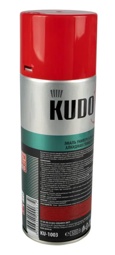 Универсальная алкидная краска эмаль-аэрозоль KUDO RAL 3011 красная 520 мл удобна в нанесении за счет спрей-системы, используется для покраски стекла, пластика, бумаги, дерева, металла и др. Краска быстро высыхает и обладает высокой адгезией. Применяется для наружных и внутренних работ. Краска устойчива к ультрафиолету.