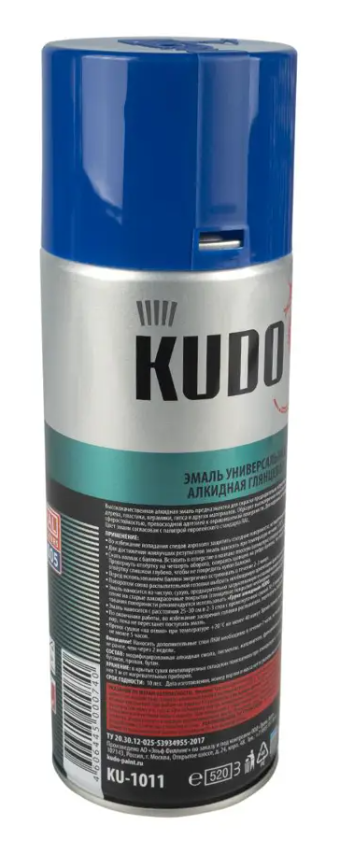 Универсальная алкидная краска эмаль-аэрозоль KUDO RAL 5005 синяя 520 мл удобна в нанесении за счет спрей-системы, используется для покраски стекла, пластика, бумаги, дерева, металла и др. Краска быстро высыхает и обладает высокой адгезией. Применяется для наружных и внутренних работ. Краска устойчива к ультрафиолету.